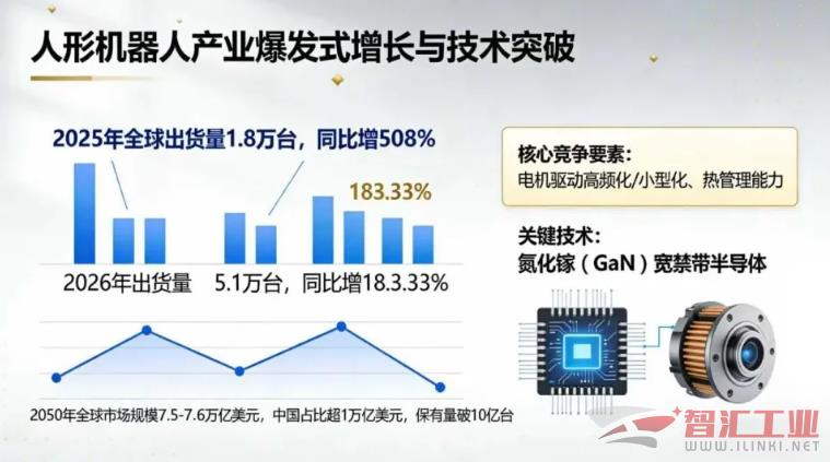 在產業(yè)從實驗室原型向規(guī)?;慨a快速推進的關鍵時期,電機驅動高頻化、關節(jié)小型化以及高效熱管理已成為決定行業(yè)競爭格局的核心因素。與此同時,氮化鎵(GaN)寬禁帶半導體技術的產業(yè)化落地,正在破解產業(yè)核心技術瓶頸、釋放市場增長潛力方面發(fā)揮關鍵作用,同時也為國產芯片企業(yè)提供了搶占全球萬億市場的歷史性契機。