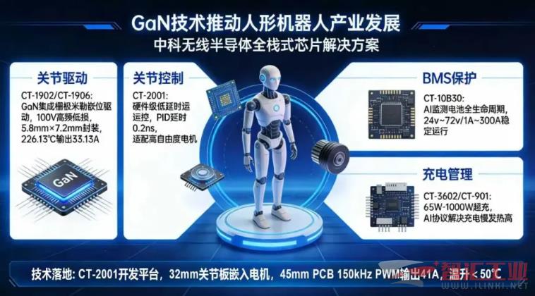 其中,中科無線半導體(CT-UNITE)依托全棧式GaN動力系統(tǒng)芯片解決方案,成為國產人形機器人核心芯片領域的佼佼者,其技術規(guī)劃與產品落地能力充分體現了中國企業(yè)在這一賽道的核心競爭力,也為中國搶占全球人形機器人產業(yè)制高點奠定了核心器件基礎。